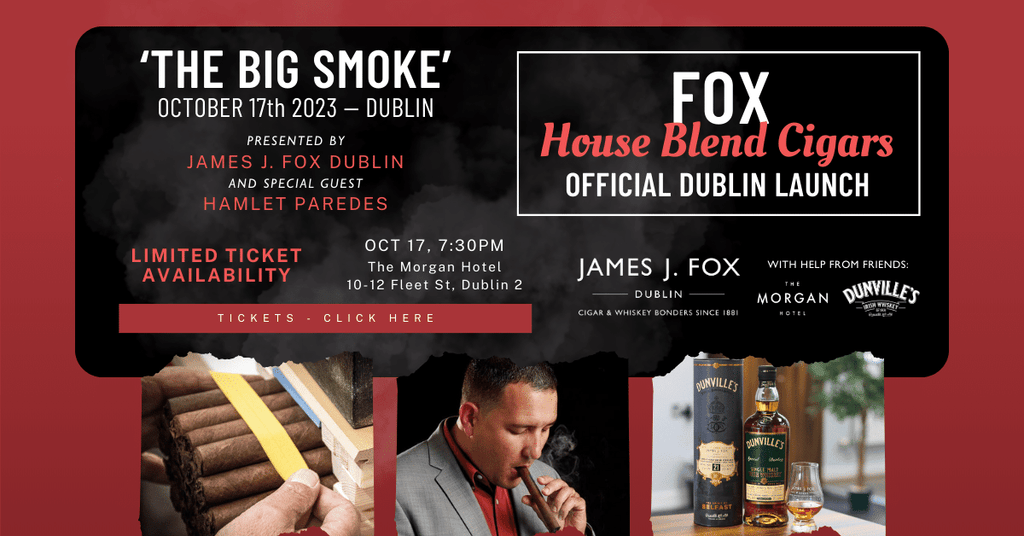 Since 1881, James J. Fox Cigar and Whiskey Store has been Ireland's premier tobacconist and has now added to this reputation a large range of Irish and Scotch whiskeys, to satisfy the most discerning of palates. In our online store, you will find a large selection of premium handmade Cuban cigars, smoking pipes, Irish whiskey, Scotch whisky, Irish gin, cigar and pipe accessories, as well as our world-renowned James Fox cigars and pipe tobacco.