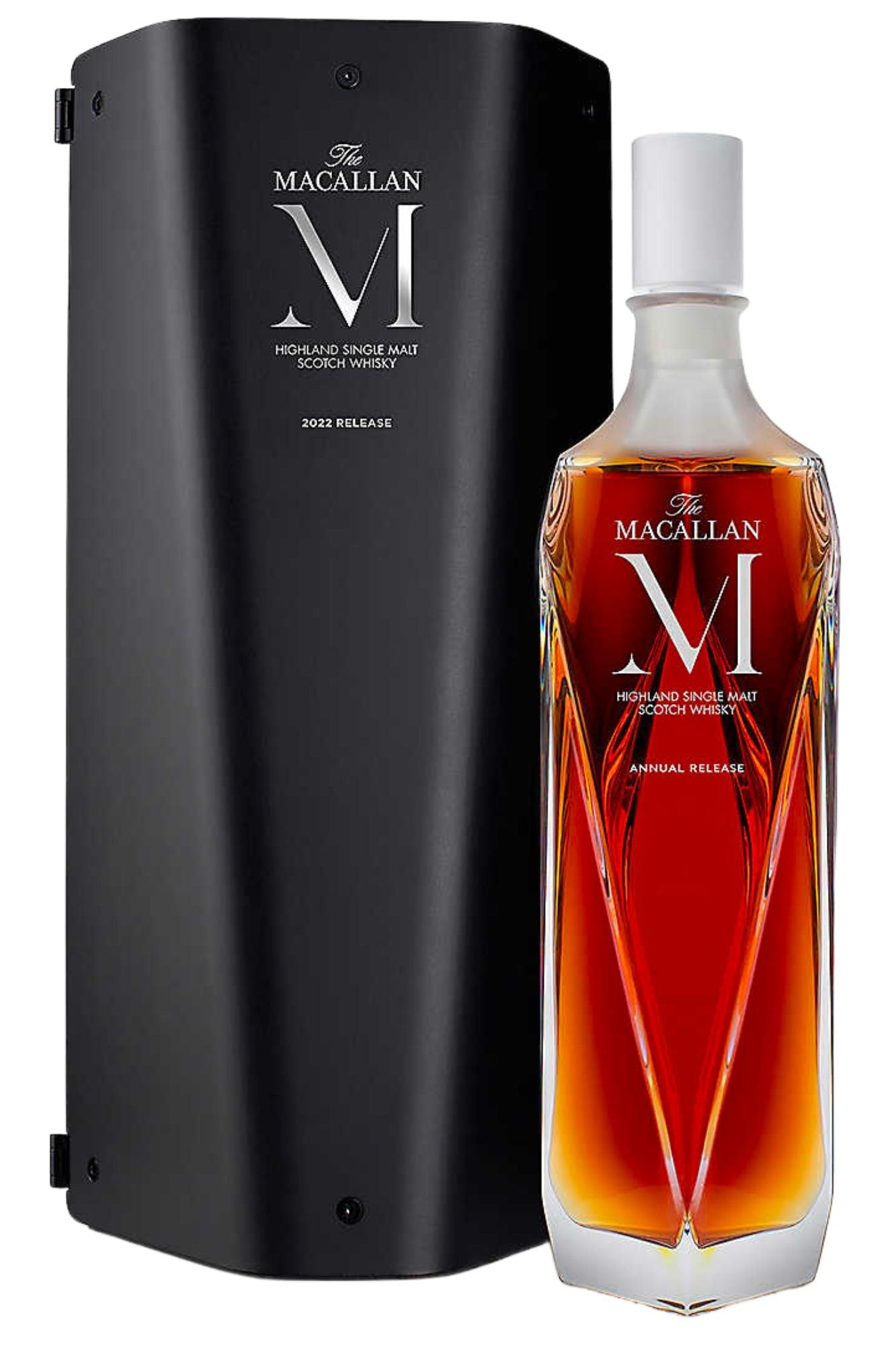 The Macallan M, 2022 Release, among the darkest of The Macallan outturns, shines a light on a rare selection of irreplaceable casks. Prolonged contact with sherry oak has burnished a deep and brooding single malt.