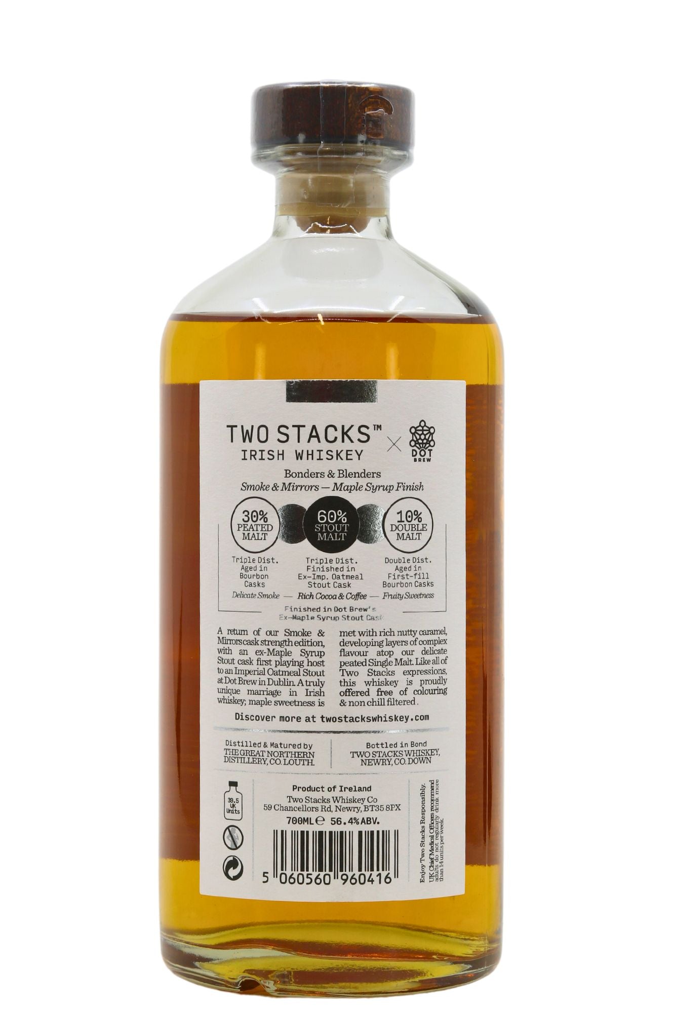 A return of Two Stacks' Smoke & Mirrors cask strength edition, with an ex-Maple Syrup Stout cask first playing host to an Imperial Oatmeal Stout at Dot Brew in Dublin. A truly unique marriage in Irish whiskey; maple sweetness met with rich nutty caramel, developing layers of complex flavour atop the delicate peated Single Malt. Like all of Two Stacks expressions, this whiskey is proudly offered free of colouring & non chill filtered.