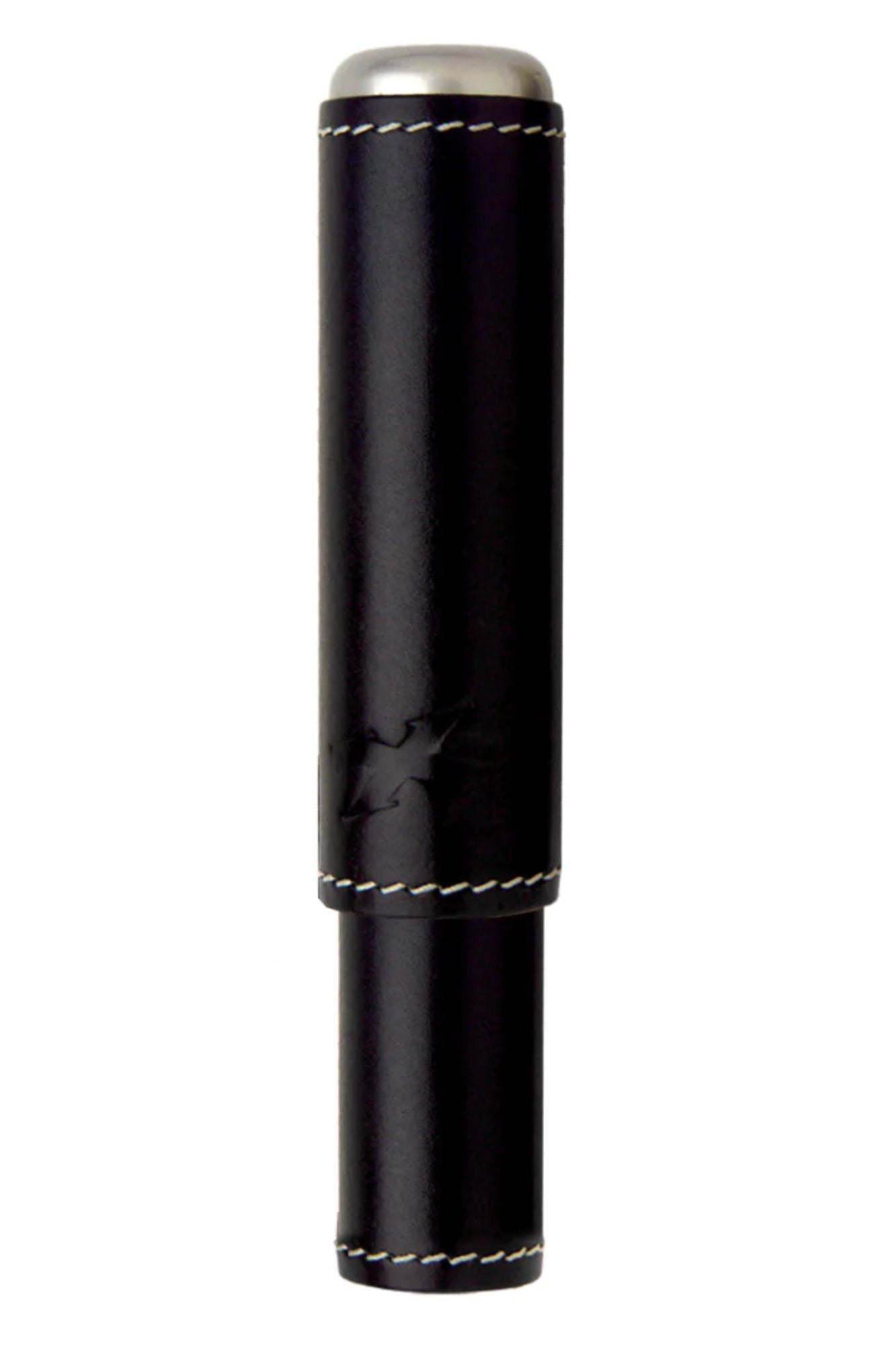 The Envoy single cigar case holds a single cigar up to 60-ring gauge each, keeping any smoke safe with a modern style all its own. With top-grain, armada leather, each piece has a well-dressed appearance and a soft feel. Contrast stitching secures the leather, giving it a contemporary look. The inner lining of the crush-proof case, crafted with genuine Spanish cedar, holds the ambient humidity of the cigar and projects the fresh cedar smell of a humidor on every opening. Stylish metal caps cover each end, reinforcing the strength of the case.