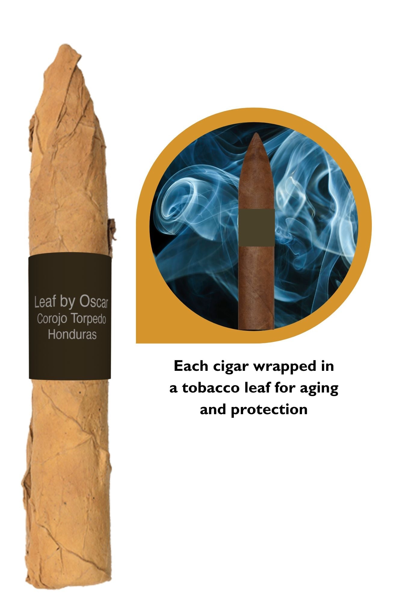 Oscar Valladares has developed a new line of premium cigars at his boutique factory in Danli, Honduras. Each LEAF cigar is a testament to the land on which the tobaccos were grown and all the people who contributed to its production. The bands are made by a local company using organic agave to craft the paper. Instead of cellophane, the torcedors have laid each stick inside of a leaf of tobacco for aging and protection. These cigars are considered one of the most exciting developments in premium cigar smoking in quite some time.